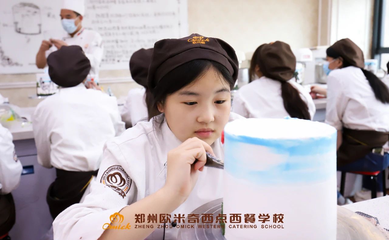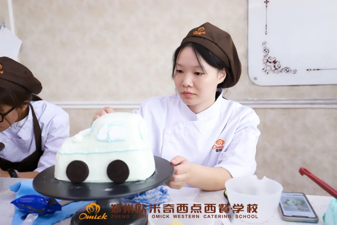 与传统教育中重理论的文化课形成鲜明对比的是,职业教育强调实操和动手能力。在课堂上,原材料供应充足,老师亲自指导学生进行蛋糕制作、面包烘焙、甜品调配等实操训练。